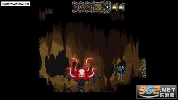 这是一款复古式的横版动作闯关游戏。